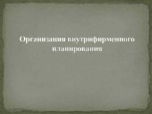Организация внутрифирменного планирования Планирование — это процесс