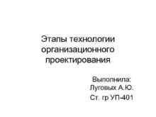 Этапы технологии организационного проектирования Выполнила Луговых А Ю