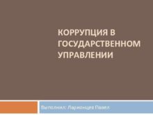 КОРРУПЦИЯ В ГОСУДАРСТВЕННОМ УПРАВЛЕНИИ Выполнил Ларионцев Павел