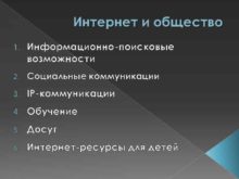 Интернет и общество 1 Информационно-поисковые возможности 2 Социальные