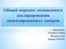 Общий порядок таможенного декларирования лицензированных товаров Выполнили Семенчук