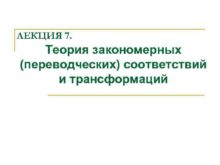ЛЕКЦИЯ 7 Теория закономерных переводческих соответствий и трансформаций