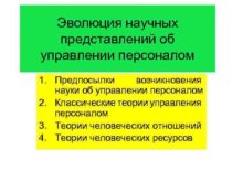 Эволюция научных представлений об управлении персоналом 1 Предпосылки