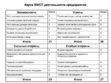 Карта SWOT деятельности предприятия Возможности Баллы Угрозы Баллы