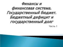 Финансы и финансовая система Государственный бюджет Бюджетный дефицит
