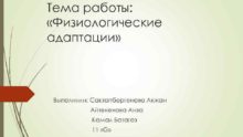 Тема работы Физиологические адаптации Выполнили Сактапбергенова Акжан Айтекенова