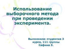 Использование выборочного метода при проведении эксперимента Выполнила студентка