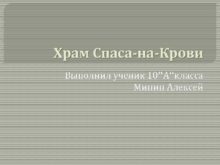 Храм Спаса-на-Крови Выполнил ученик 10 А класса Минин Алексей