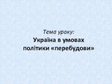 Тема уроку Україна в умовах політики перебудови