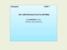Лекция 6 ГЕО 3 ОРГАНИЧЕСКАЯ ЧАСТЬ ПОЧВЫ ЗАУШИНЦЕНА
