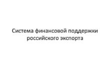Система финансовой поддержки российского экспорта Механизм поддержки
