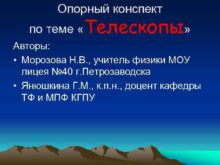 Опорный конспект по теме Телескопы Авторы Морозова