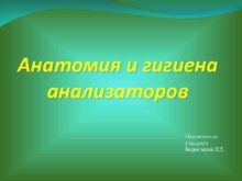 Анатомия и гигиена анализаторов Подготовила учащаяся Бервяченок Е