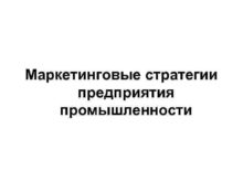 Маркетинговые стратегии предприятия промышленности ПРОБЛЕМА Особенности формирования