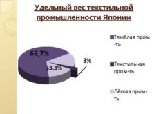 Удельный вес текстильной промышленности Японии Тяжёлая пром -ть