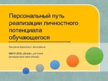 Персональный путь реализации личностного потенциала обучающегося Токарева Бриллиант