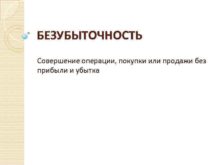 БЕЗУБЫТОЧНОСТЬ Совершение операции покупки или продажи без прибыли