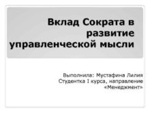 Вклад Сократа в развитие управленческой мысли Выполнила Мустафина