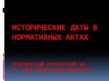 ИСТОРИЧЕСКИЕ ДАТЫ В НОРМАТИВНЫХ АКТАХ ТЕМАТИЧЕСКИЙ КУРАТОРСКИЙ ЧАС