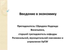 Введение в экономику Преподаватель Сбродова Надежда Васильевна старший