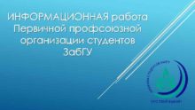 ИНФОРМАЦИОННАЯ работа Первичной профсоюзной организации студентов Заб ГУ