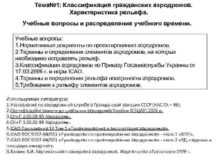 Тема 1 Классификация гражданских аэродромов Характеристика рельефа Учебные