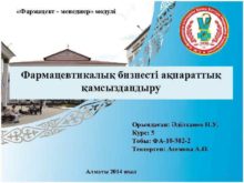 Фармацевт — менеджер модулі Фармацевтикалық бизнесті ақпараттық