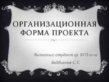 ОРГАНИЗАЦИОННАЯ ФОРМА ПРОЕКТА Выполнил студент гр БГП-11 -01