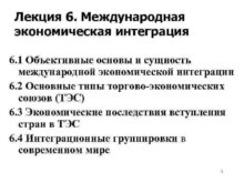 Лекция 6 Международная экономическая интеграция 6 1 Объективные
