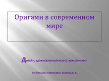 Оригами в современном мире ДИЗАЙН ВДОХНОВЛЕННЫЙ ИСКУССТВОМ ОРИГАМИ