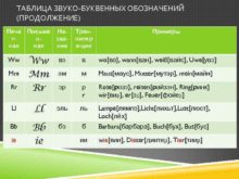 ТАБЛИЦА ЗВУКО-БУКВЕННЫХ ОБОЗНАЧЕНИЙ ПРОДОЛЖЕНИЕ Печа тная Письме нная