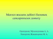 Мектеп жасына дейінгі баланың сенсорикасын дамыту Орындаған Мухамединова