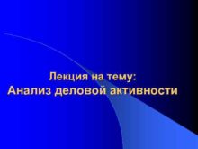 Лекция на тему Анализ деловой активности План