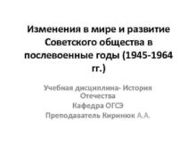 Изменения в мире и развитие Советского общества в