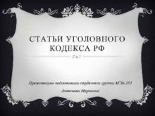 СТАТЬИ УГОЛОВНОГО КОДЕКСА РФ Презентацию подготовила студентка группы
