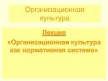 Организационная культура Лекция Организационная культура как нормативная система