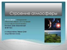 Строение атмосферы Атмосфера воздушная оболочка Земли на