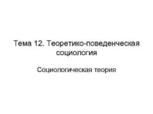 Тема 12 Теоретико-поведенческая социология Социологическая теория ПЛАН
