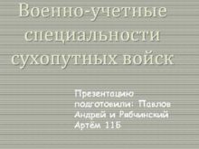 Военно-учетные специальности сухопутных войск Презентацию подготовили Павлов Андрей
