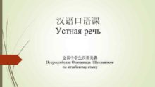 汉语口语课 Устная речь 全国中学生汉语竞赛 Всероссийская Олимпиада Школьников по