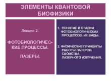 ЭЛЕМЕНТЫ КВАНТОВОЙ БИОФИЗИКИ Лекция 2 ФОТОБИОЛОГИЧЕСКИЕ ПРОЦЕССЫ ЛАЗЕРЫ