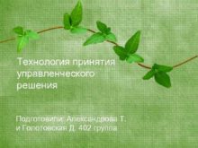 Технология принятия управленческого решения Подготовили Александрова Т и