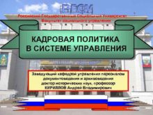 Российский Государственный Социальный Университет Факультет социального управления КАДРОВАЯ