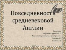 Повседневность средневековой Англии Выполнили Студентки группы Кл-41 Факультета