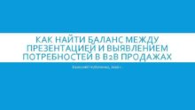 КАК НАЙТИ БАЛАНС МЕЖДУ ПРЕЗЕНТАЦИЕЙ И ВЫЯВЛЕНИЕМ ПОТРЕБНОСТЕЙ