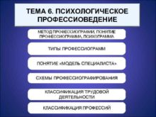 ТЕМА 6 ПСИХОЛОГИЧЕСКОЕ ПРОФЕССИОВЕДЕНИЕ МЕТОД ПРОФЕССИОГРАФИИ ПОНЯТИЕ ПРОФЕССИОГРАММА