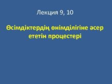 Лекция 9 10 Өсімдіктердің өнімділігіне әсер ететін процестері