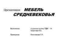 МЕБЕЛЬ CРЕДНЕВЕКОВЬЯ Презентация Выполнила студентка группы ТДМ