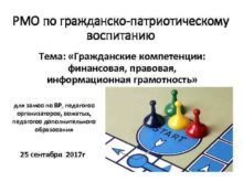 РМО по гражданско-патриотическому воспитанию Тема Гражданские компетенции финансовая
