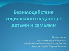 Взаимодействие социального педагога с детьми и семьями Подготовили